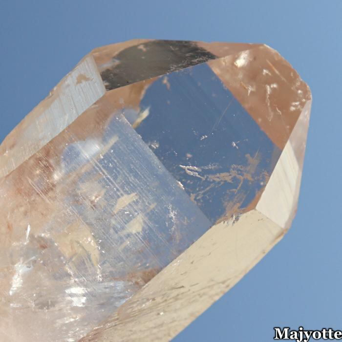 こちらのアイテムは透明度の高いポイントで各所にヒマラヤ・マニカラン産の特有であるピンク色(ヘマタイト)をした姿をみせてくれる原石です。マニカラン産水晶を感じてください。