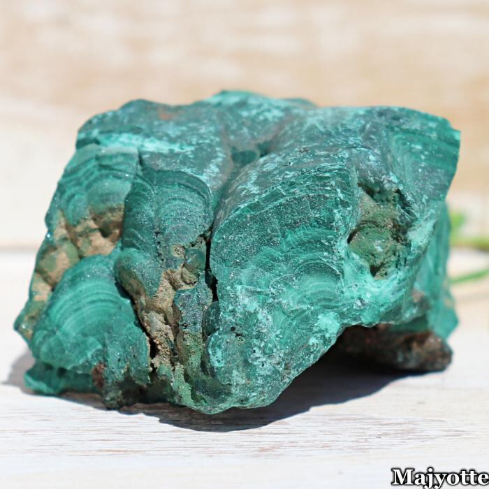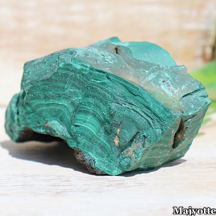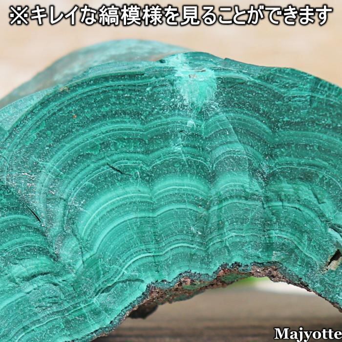 ★マラカイトの和名は “孔雀石” 美しいグリーンと綺麗な模様が羽を広げた孔雀の様に見える事からその名前がつけられました。今回ご紹介のアイテムはマラカイト特有の模様が綺麗に見ることができる原石です。加工石では味わえないマラカイトの曲線美をお楽しみください。