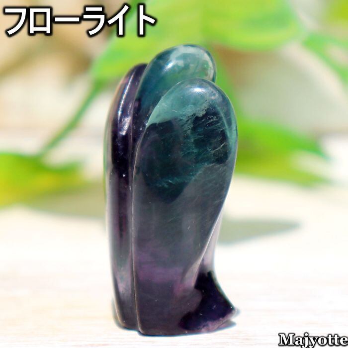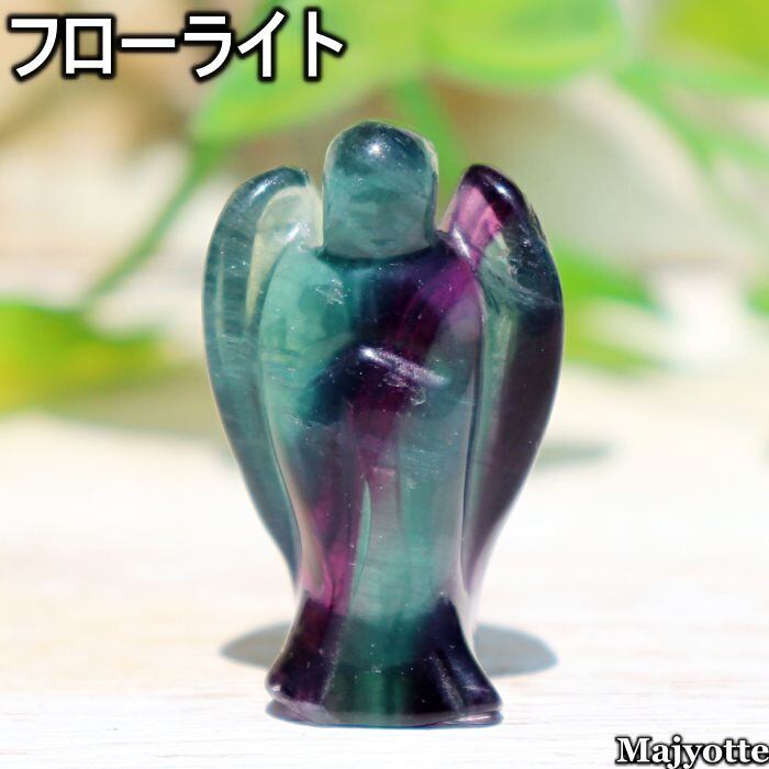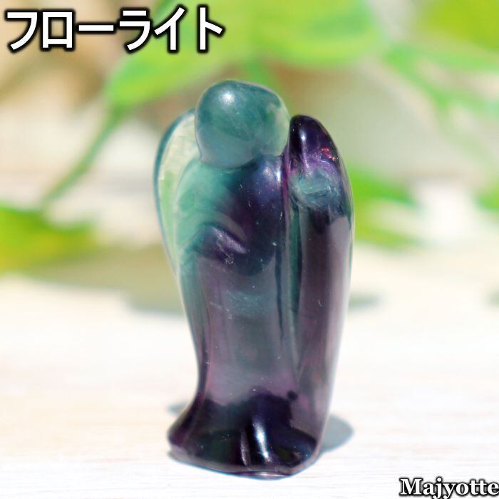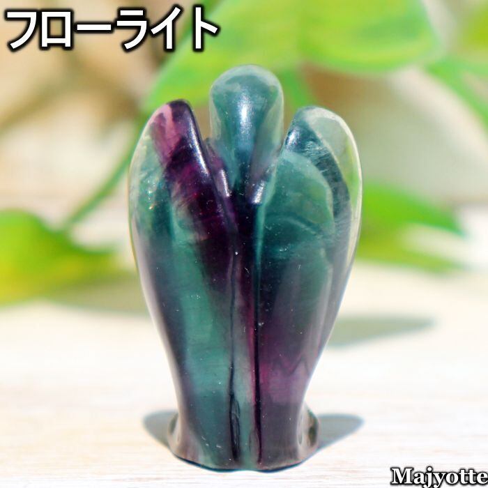 ★フローライトは豊富なカラーバリエーションを持つ天然石です。こちらのアイテムは人気の天使(エンジェル)の形で神秘的なグラーデーションが綺麗に見ることのできるフローライトです。机やカウンターなどの小スペースでも可愛く飾ることのできるアイテムです。